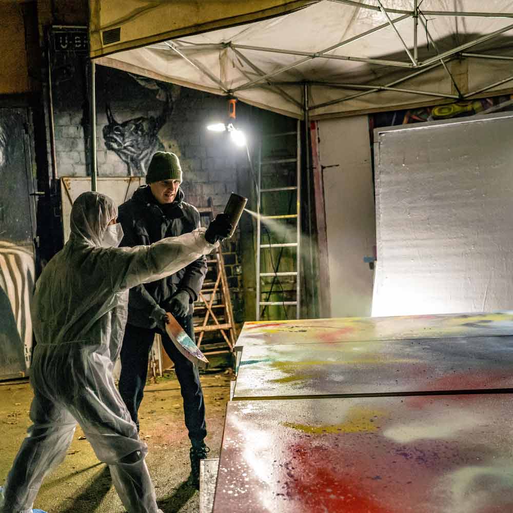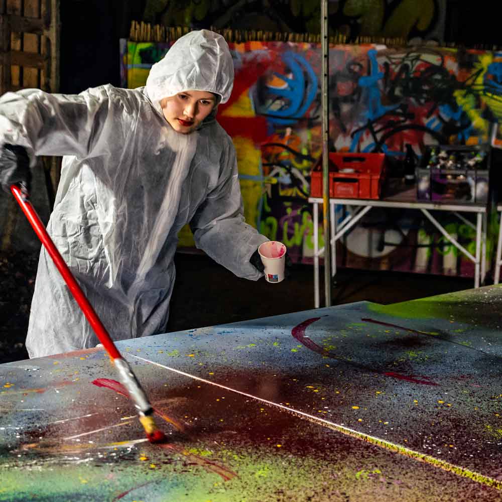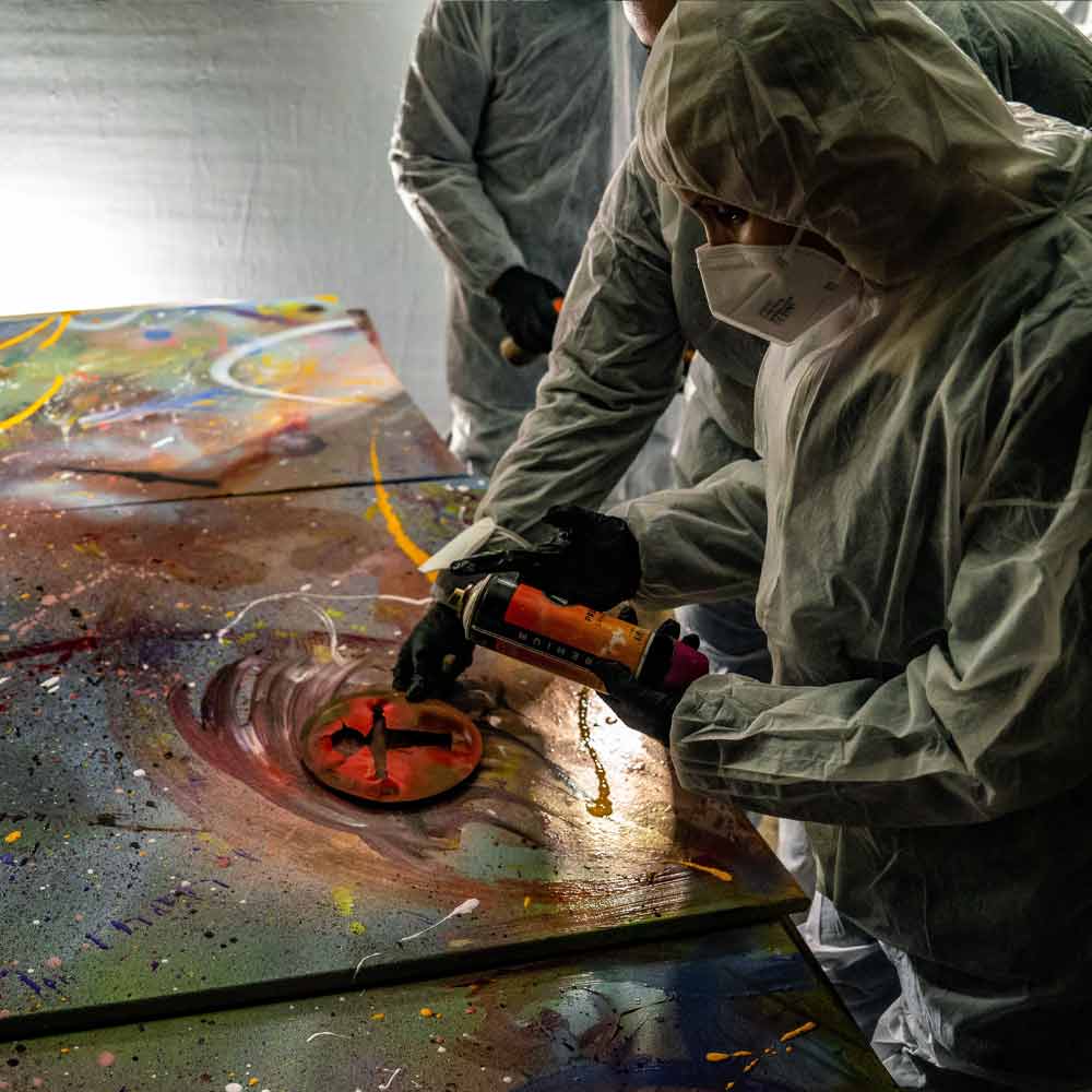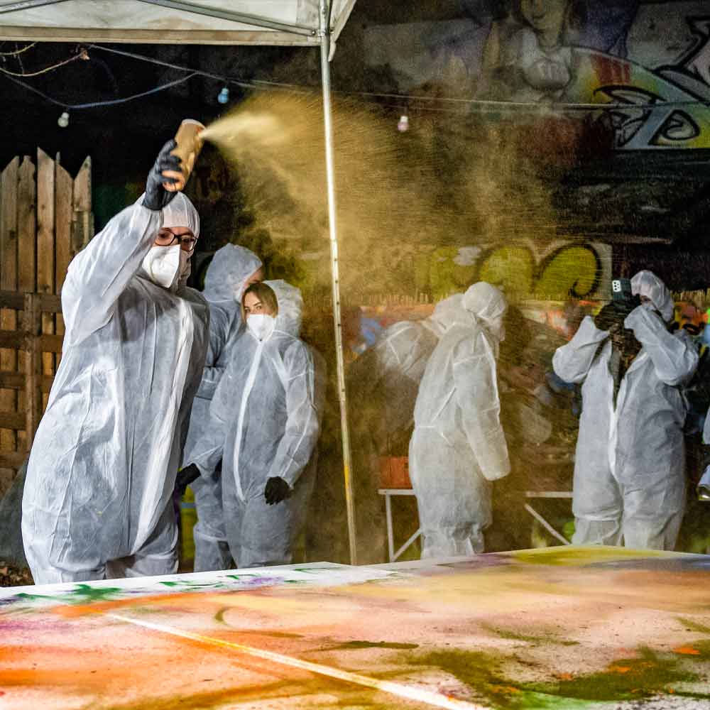 Während des Speed & Action Painting Workshops lernen die Gäste von unseren Urban Artists professionelle Techniken und arbeiten ausschließlich mit hochwertigen Materialien und Tools. Unser Ziel: erstklassige, kreative Teamevents und unvergessliche Erlebnisse für Ihr Team.