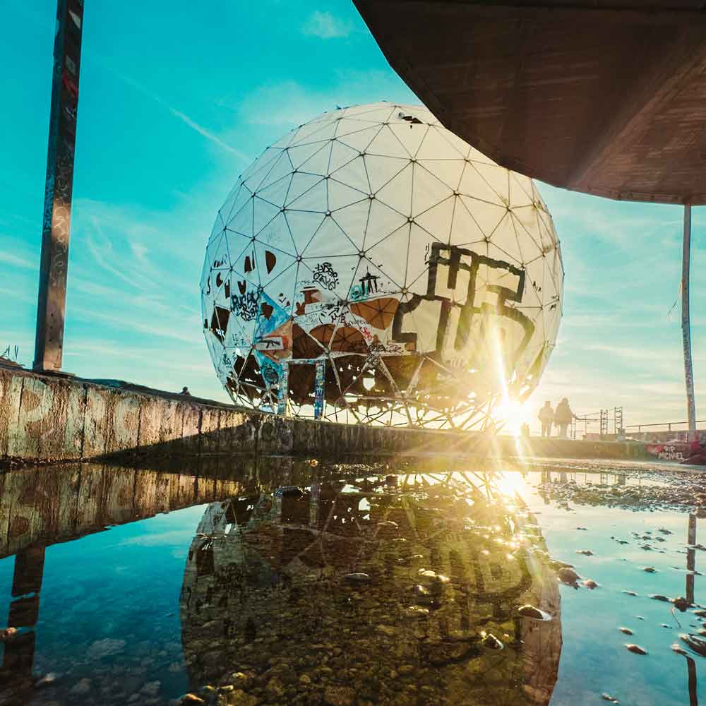 Bei Sonnenschein gestaltete unser Kollege Hendrik einen der Kampagnenvisuals mit Skyline Elementen des Bezirk bzw. Bezirke im Corporate Style und nach Vorgabe. Unter den Radomen der ehemaligen Abhörstation Endstand vor den Augen der Besucher das Street Art Kunstwerk.