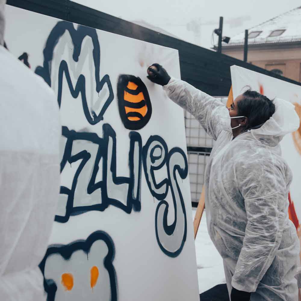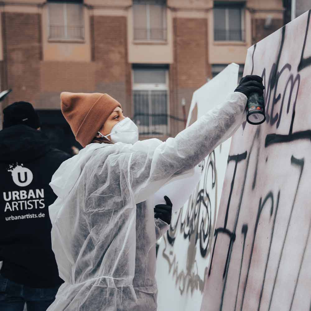 Während des Workshops stehen unsere URBAN ARTISTS den Teilnehmern tatkräftig zur Seite. Sie zeigen den Umgang mit Sprühdosen, Markern und anderen Materialien, geben hilfreiche Tipps und sorgen dafür, dass jede Idee umsetzbar wird.