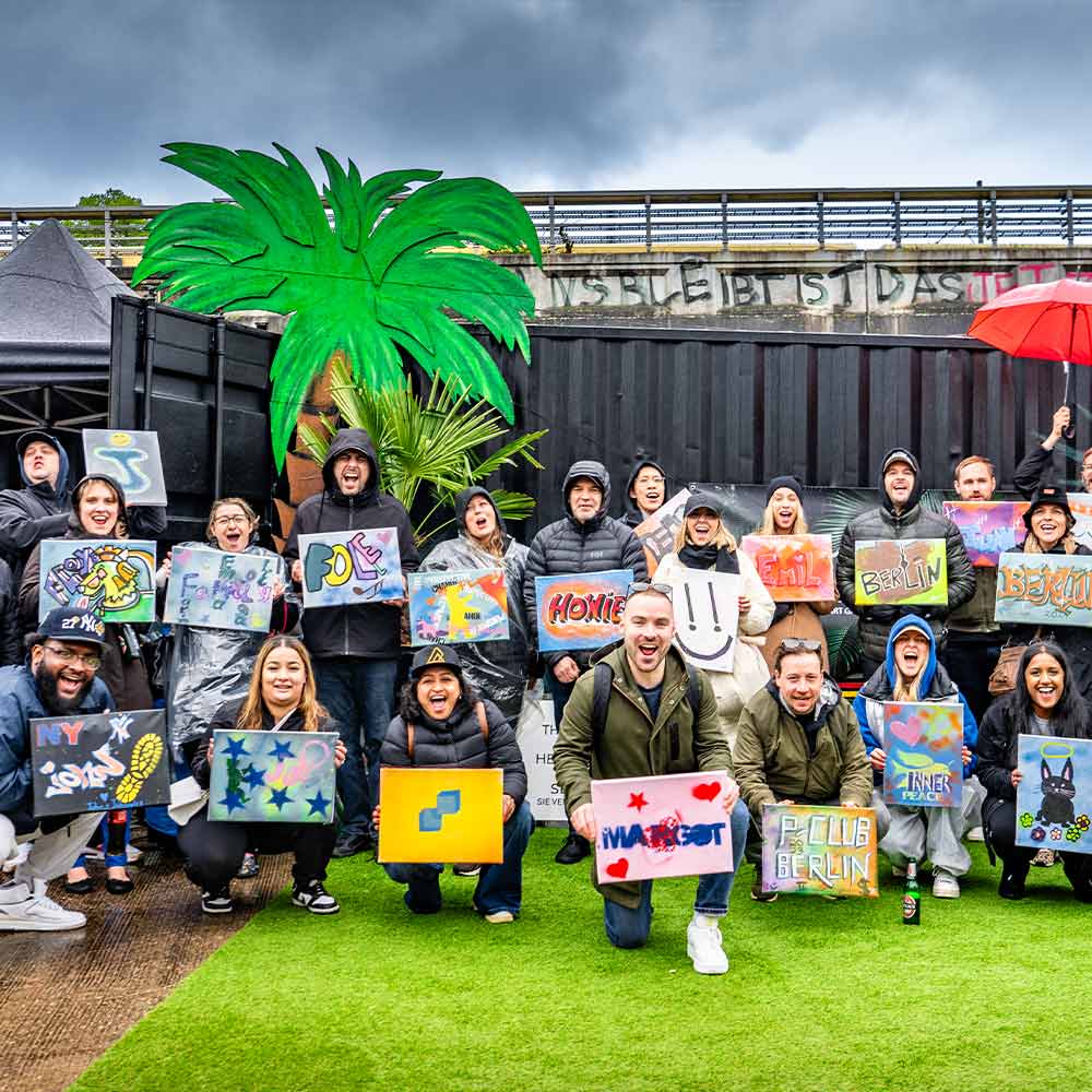 Bei diesem Street Art & Graffiti Workshop hatten die Teilnehmer*innen die Möglichkeit, eigene kleine Leinwände zu gestalten, die sie im Anschluss mit nach Hause nehmen konnten. So wurde aus einem kreativen Teamevent nicht nur ein gemeinsames Erlebnis, sondern auch ein persönliches Andenken, das noch lange an die Zusammenarbeit und die gemeinsam geschaffenen Kunstwerke erinnert.