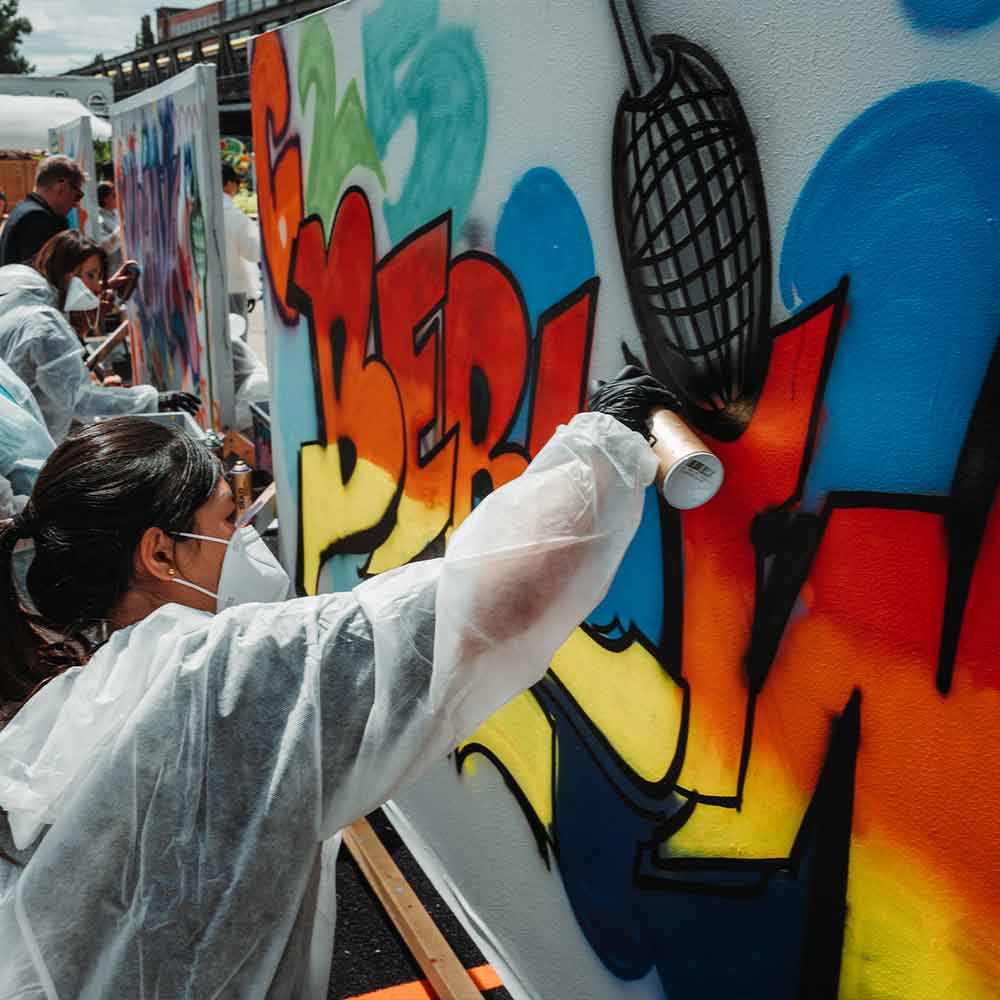 Unser Street Art & Graffiti Workshop ist die ideale Gelegenheit, Teamgeist und Zusammenhalt auf kreative Weise zu fördern.