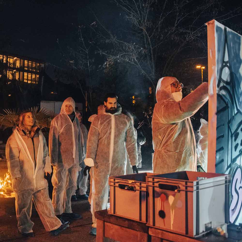 Bei der Weihnachtsfeier von SELUX an unserer Location URBAN EASTSIDE tauchten die Gäste gemeinsam in die Welt von Street Art und Graffiti ein. Nach einer herzlichen Begrüßung gab unser URBAN ARTISTS Team eine kompakte Einführung in die Grundlagen der urbanen Kunst. Den Gästen wurde ein Einblick in die Welt von Street Art & Graffiti gegeben, bei der Ideenfindung geholfen sowie der Vorgang mit einem Graffiti Piece erklärt.