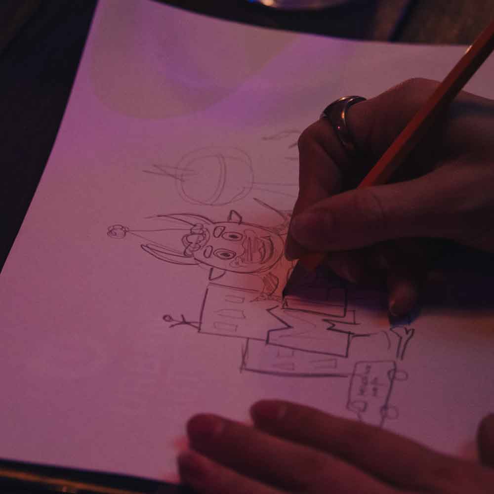 Jede:r Teilnehmer:in bekam ein eigenes Blackbook, das nicht nur während des Street Art und Graffiti Workshops genutzt wurde, sondern auch als kreativer Begleiter für zu Hause diente. Darin entwickelten die Gäste ihre ersten Skizzen, sammelten Motive und formten aus einzelnen Ideen ein stimmiges Gesamtkonzept. Als zentrales Gestaltungselement diente natürlich das Maskottchen, Miles, das als Leitmotiv den kreativen Prozess prägte.
